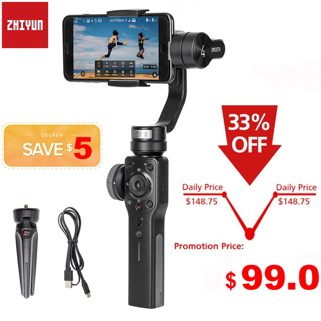 Zhiyun Smooth 4 3-Axis Handheld Smartphone Gimbal Stabilizer for iPhone XS XR X 8Plus 8 7P 7 6S Samsung S9 S8 S7 & Action Camera