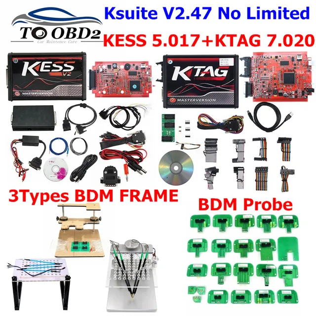 Product descriptionThis Product is one of Hot Product (New) Catalog and Category in Aliexpress, it meant get Good Sales and Good Rated by Most Buyers.Limited Offer DHL Free Red EU KTAG V7.020 V2.25 KESS V5.017 V2.53 Online Version LED BDM Frame BDM Probe 22pcs BD with FREE Worldwide Shipping!